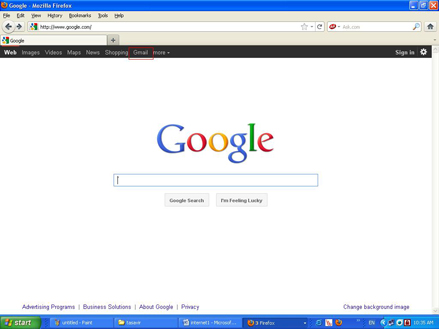 ابتدا وارد سايت گوگل به آدرس www.google.com مي شويم و بر روي گزينه Gmail(بالاي صفحه) كليك مي كنيم.