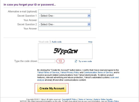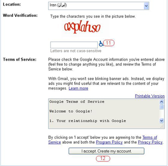 12- در این قسمت باید یک پاسخ برای سوالی که در مرحله 11 مطرح کرده اید ، بنویسید.توجه کنید که این سوال هیچ دلیلی ندارد که به جواب مربوط باشد و همچنین اگر شما رمز ایمیلتان را فراموش کردید باید به این سوال رمزی و پاسخ آن و همچنین به تاریخ تولدی که وارد کرده اید توجه داشته باشید تا هیچگاه آنها را فراموش نکنید.زیرا در صورت فراموشی رمز ایمیلتان دیگر نمی توانید رمز آن را بازیابی کنید.