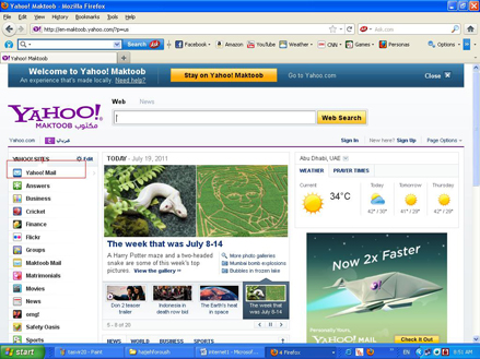 ابتدا وارد سایت Yahoo به آدرس Http://www.yahoo.com می شویم.تصویر پایین،صفحه اول این سایت است.