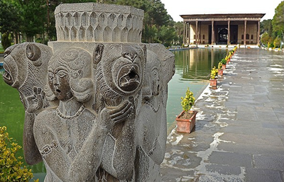 باغ چهلستون که 67000 متر مربع مساحت دارد، در اصفهان و در دورۀ شاه عباس اول ساخته شده و در وسط آن ساختمانی باشکوه ساخته شده است. در سلطنت شاه عباس دوم، در این ساختمان، تغییرات کلی داده شده و تالار آینه، تالار 18 ستون، دو اتاق بزرگ شمالی و جنوبی تالار آینه، ایوان های دو طرف سالن پادشاهی و حوض بزرگ مقابل تالار با تمام تزیینات نقاشی و آینه کاری و کاشیکاری دیوارها و سقف ها اضافه شده است.