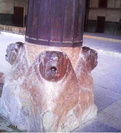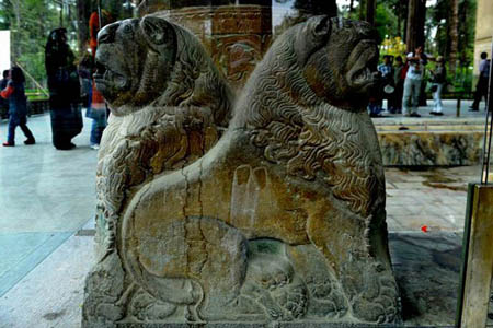 3ـ شیرهای سنگی چهارگوشۀ حوض مرکزی تالار.