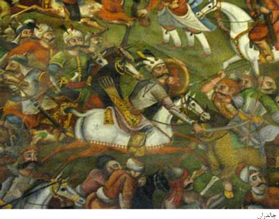 5ـ تصویری از شاه عباس اول با تاج مخصوص و . . . را نام برد.