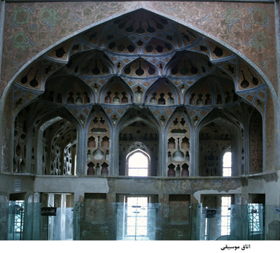 قصر «عالی قاپو» در قرن یازدهم هجری و به دستور شاه عباس اول، پادشاه صفوی؛ در اصفهان ساخته شده است. در دوره صفویه به این قصر «دولتخانه مبارکه نقش جهان» و «قصر دولتخانه» می گفتند. این ساختمان 5 طبقه است که در هر طبقه تزئینات، نقاشی ها و گچبری های زیبای با طبقات دیگر متفاوت است. این قصر برای مهمانی ها و ملاقات های شاه با مهمانان و شاهان کشورهای دیگر بوده و بعد از شاه عباس هم شاهان دیگر از این قصر برای پذیرایی از مهمان هایشان اسفاده می کردند. در این ساختمان اتاقی به نام «اتاق صوت» یا «اتاق موسیقی» است. در سقف این اتاق گچبری هایی به شکل ظرف و کوزه و . . . وجود دارد. این شکل ها باعث می شده در هنگام نواختن موسیقی صدای سازها به صورت طبیعی و بدون انعکاس صدا به گوش شنونده برسد.