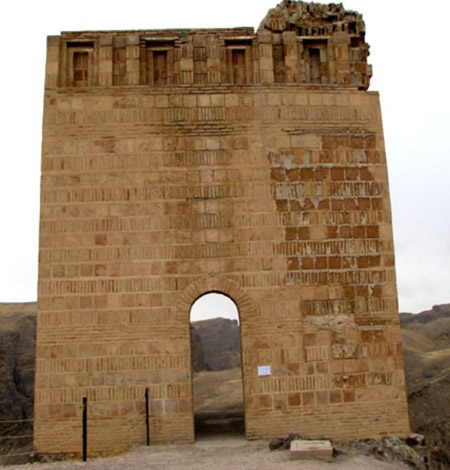 قلعه از یک چهار طاقی، که به مرور زمان پوشش طاق و یکی از پایه های آن تخریب شده، تشکیل می شود. تلاش های باستان شناسان باعث شده تالار وسیعی در اندازه ۱۱× ۱۱متر دارای راهروهایی جانبی و طرح های و نقش های متنوع گچبری که بیشتر با رنگهای اخرائی، زرد، آبی و سبز تزئین شده اند؛ کشف شود. طرح گچبری ها، شامل نقوش برجسته انسانی و حیوانی، نقوش هندسی و گل وگیاه است. این قلعه از آجر و گچ ساخته شده و ابعاد آجرها ۳۲×۳۲ و به ارتفاع ۱۰ سانتی متر است.