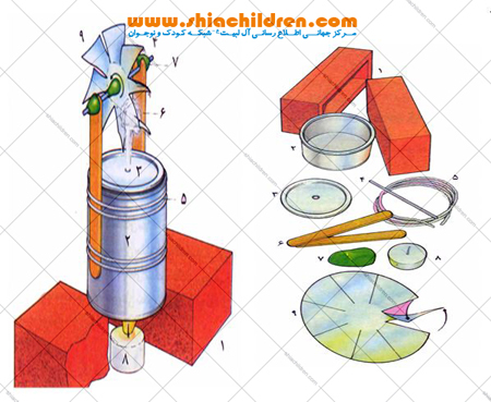 خیلی زود بخار از سوراخ بیرون می آید و پروانه را می چرخاند. مواظب باشید! بخار خیلی داغ است. دستتان را به آن نزدیک نکنید. به شمع نیز تا وقتی روشن است دست نزنید. بعد از خاموش کردن شمع، نیم ساعت صبر کنید تا همه چیز سرد شود.