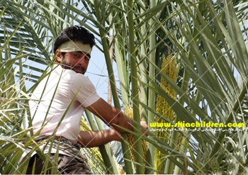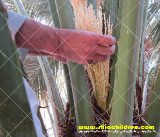 همان طور که گفتیم برای تشکیل میوه خرما رسیدن گرده درختان نر به گل های ماده ضروری است که این کار به وسیله وزش باد صورت می گیرد. برای انجام کامل تر این عمل و به دست آوردن محصول بیشتر و بهتر، نخلکاران از زمان بسیار قدیم گرده افشانی مصنوعی انجام می دادند. معمول ترین روش گرده افشانی مصنوعی به این ترتیب است که خوشه های گل نر را که تازه باز شده اند قطع می کنند و دو تا سه رشته از آن ها را در میان گل های نخل ماده قرار داده و دور آن ها را با تکه پارچه ای می بندد تا روی زمین نیفتند.